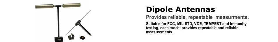 These half wavelength resonant dipole antennas are the foundation of every compliance testing lab. Initial designed by Willmar K. Roberts, these precision made half wavelength dipole antennas are the ideal solution for site attenuation measurments. Each antenna is manufactured with a balun loss of less than 0.5 dB and a VSWR of less than 1.5:1 The half wavelength resonant dipole antenna is the simplest antenna from a theoretical point of view, and are commonly used as a gain reference.