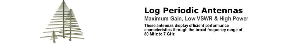 A.H. Systems' offers 13 Log Periodic Antennas. Each antenna is lightweight, compact, rugged and has been manufactured to ensure maximum gain, low VSWR and high power handling capabilities. Whether testing inside a shielded enclosure or outdoors, the antennas will display efficient performance characteristics through the broad frequency range of 80 MHz to 7GHz. Click on a model below to learn more about it's characteristics.
